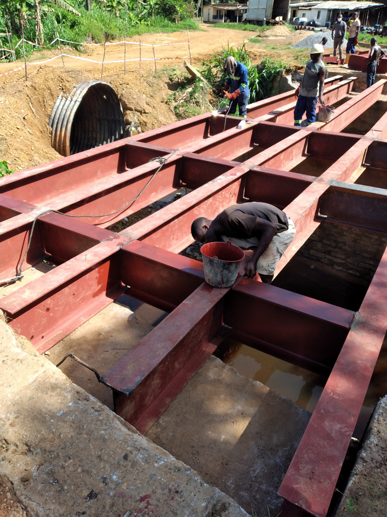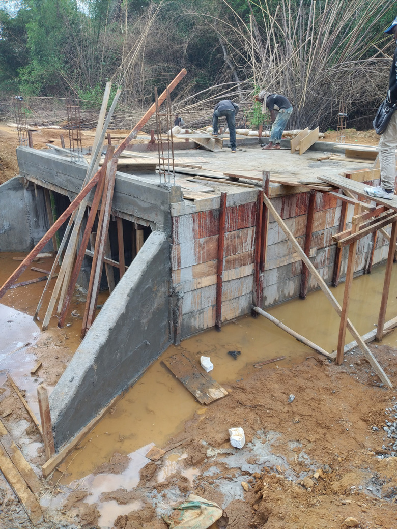 Les equipes Techniques de CAPUTRACO SARL sont déployées dans le cadre de ce projet pour Pour les Travaux de Construction des Ouvrages d’Art dans la Commune de Pouma.